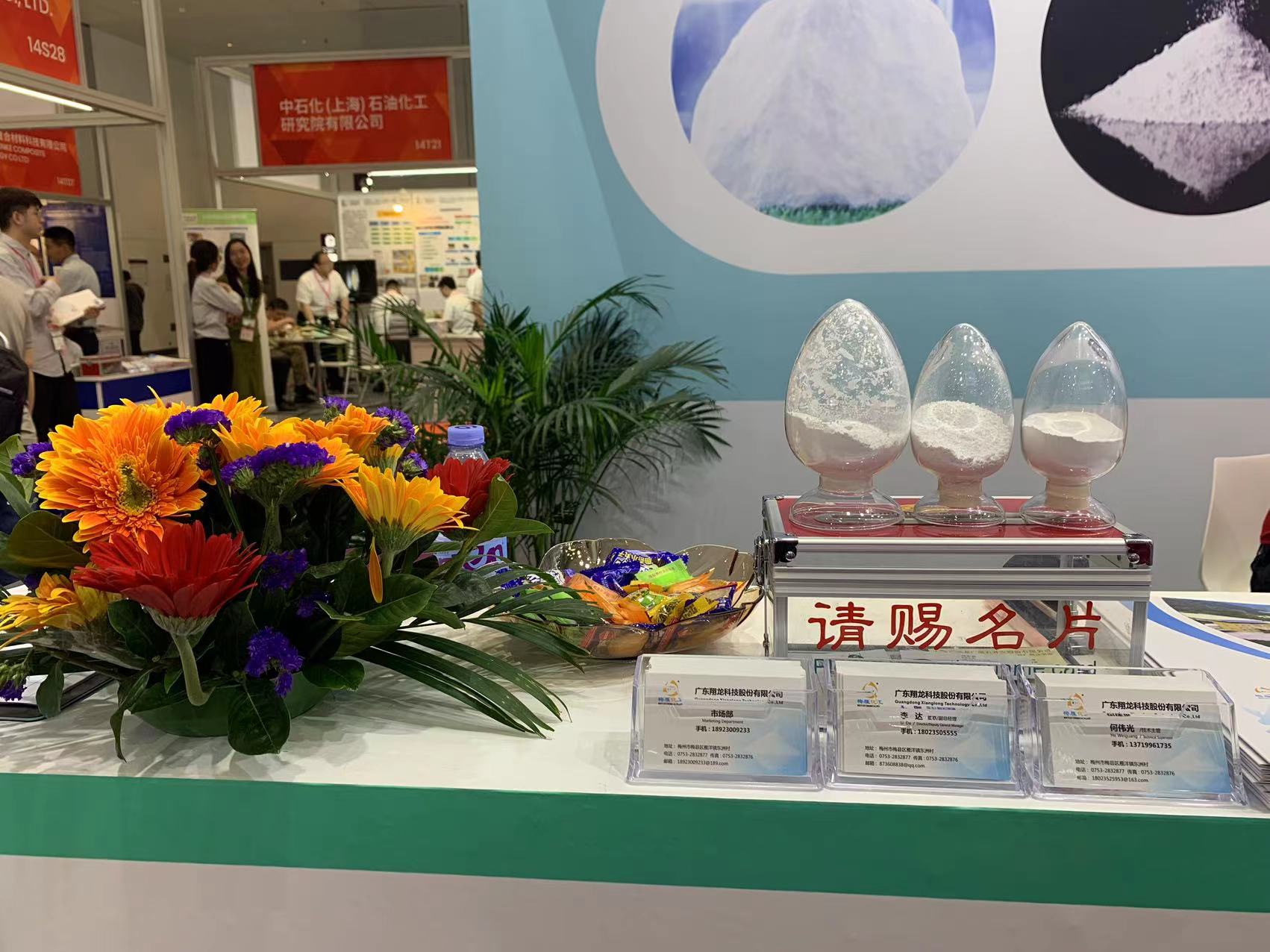 在此次展會上,翔龍科技展出了我司的核心產品:XL-02A,XL-75A,XL-6000等,我司以優選越南高純度大理石,搭配色選機進行色選分級。成品白度高,顏色穩定。再經過德國進口ALPINE干法立式攪拌研磨系統和英國ATRITOR脫水改性系統形成超細類、超高包覆率類碳酸鈣。